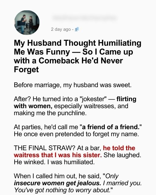 Before marriage, my husband was sweet. After? He turned into a “jokester”— flirting with women, especially waitresses, and making me the punchline.