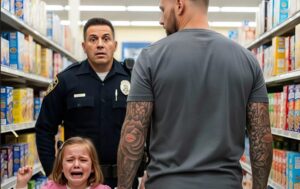 I couldn’t intervene immediately. The man, looking distracted, was scanning the shelves near the checkout, his hand still firmly gripping the little girl’s wrist. It wasn’t a protective gesture. It was total control, a sign of dominance. The girl was trembling, and I knew I had to act.