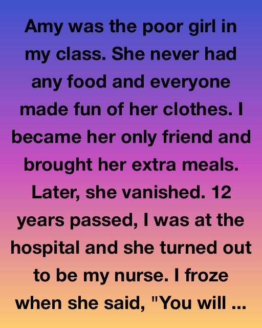 I couldn’t believe what I was hearing. Amy, the girl who wore oversized shoes and never brought lunch, was now a nurse—confident, calm, and kind.
