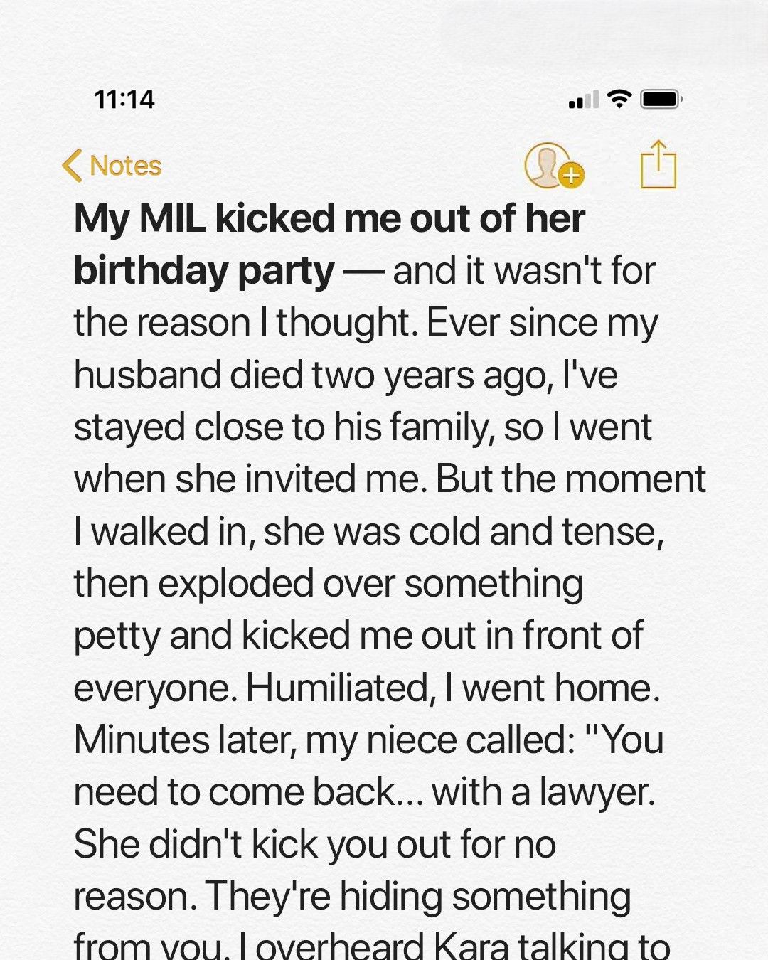 Moments later, Melissa received a surprising call from Emma, Mark’s niece, asking her to return with her lawyer. Emma had overheard Kara speaking with the family attorney in private. It turned out Eleanor, Mark’s grandmother, had left her successful business to Melissa, not Kara. Kara had just found out and was planning to keep this information from Melissa. Shocked but determined, Melissa called David, her lawyer, and returned to the house.