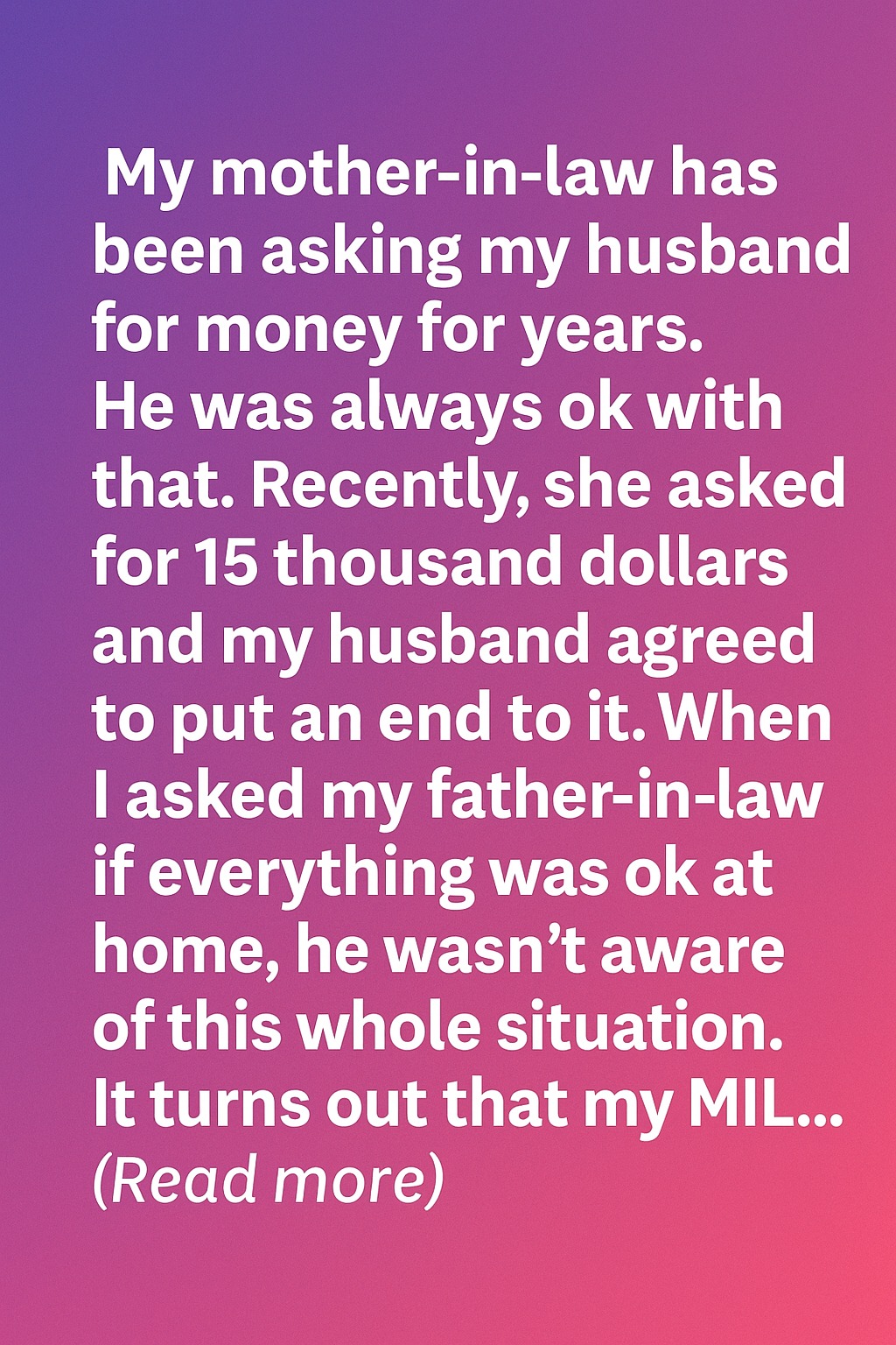 My mother-in-law had been asking my husband for money for years, and he always agreed without question. It started with small amounts, but over time, her requests grew larger. Recently, she asked for $15,000, and that was the moment my husband decided enough was enough. He wanted to understand what was really going on.