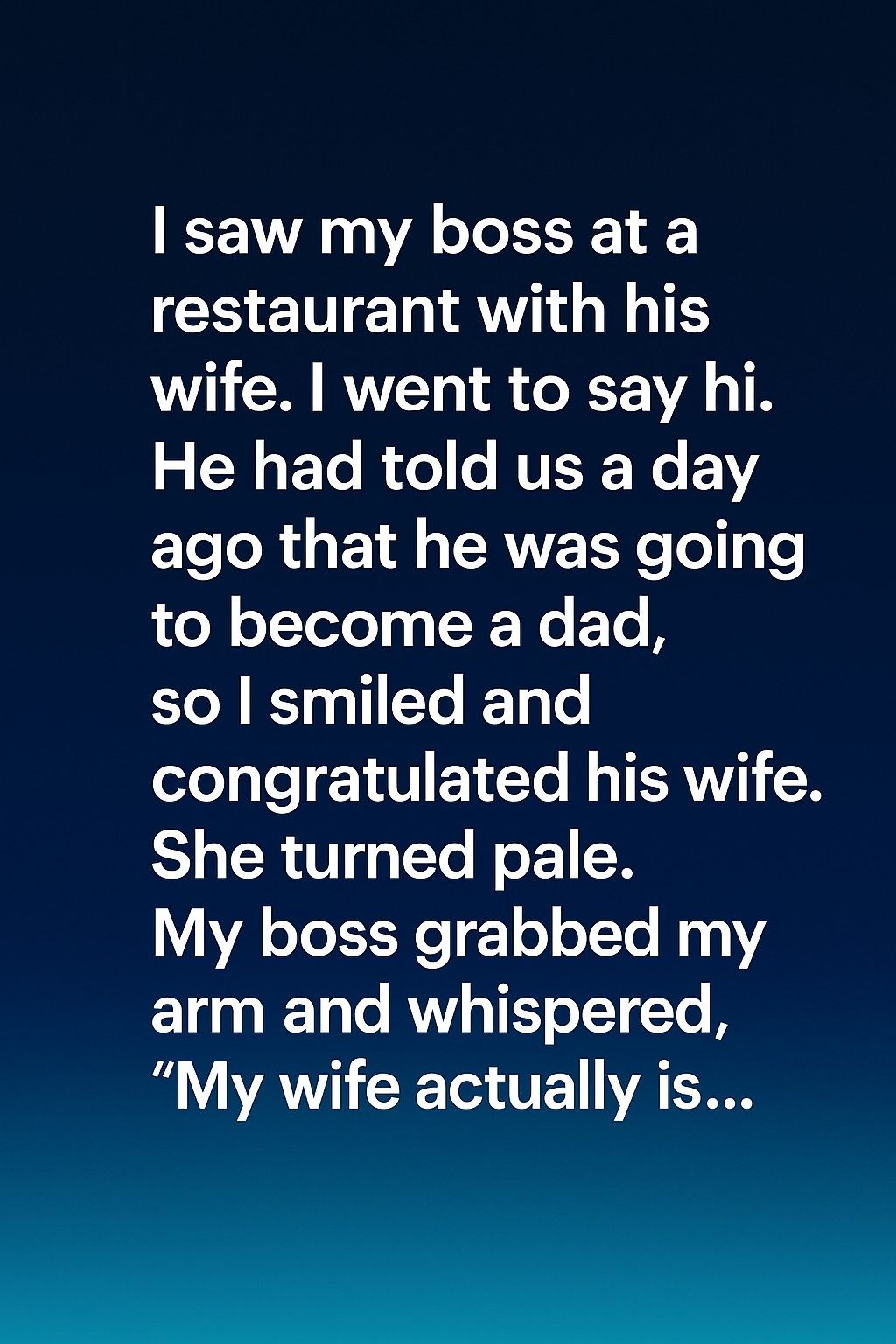 so I smiled and congratulated his wife.” She froze at my words, her face draining of color.