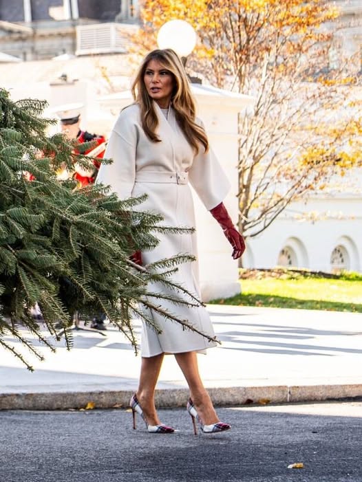 She stood in the cold Washington air, her tailored winter coat hugging her figure, exuding both elegance and an unspoken authority. She greeted the horse-drawn carriage with the ease of someone who had once known every detail of its rhythm, every sound of the bells, every careful step of the animals. Time may have passed, yet in that instant she seemed suspended in it, familiar and commanding, a figure who bridges what was with what is. The Fraser fir, freshly cut from a farm in North Carolina, was more than a tree—it was a living emblem. Rooted elsewhere, nurtured far from the White House grounds, it had been chosen to stand at the symbolic heart of American power, a reminder that tradition, like the tree, can be transplanted, shaped, and yet still endure. Melania’s words about unity, hope, and the beauty of the season carried a quiet weight, suggesting a country still grappling with itself, still seeking moments of shared reflection amid the constant noise of division.