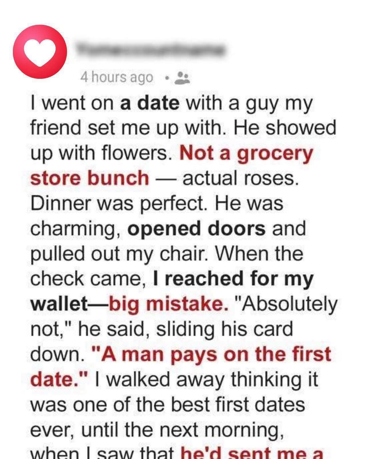Chris’s counter-invoice landed like a flare in the dark, illuminating how many of us have silently absorbed the cost of making men feel adored, accommodated, unchallenged. It turned private discomfort into shared vocabulary, and shared vocabulary into a boundary. I owe Eric nothing, but I owe myself this promise: I will never again negotiate my worth against someone else’s sense of entitlement. Let them keep their ledgers. I’m done auditioning for a spot in anyone’s accounts receivable.