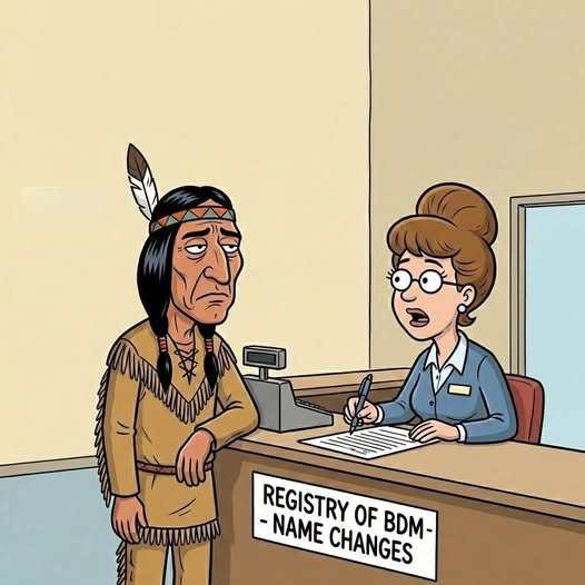 Indian warrior decided to change his name and went to the Registry of BDM (birth, death, marriages).